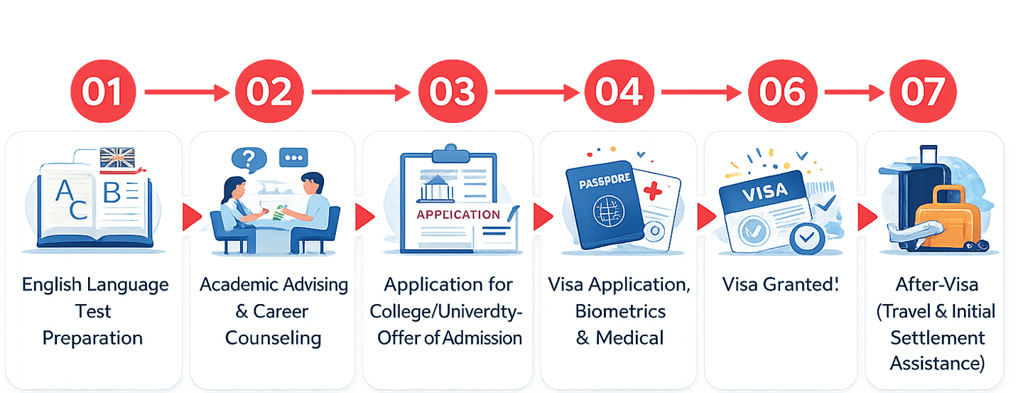 We are committed to maintaining the highest standards of professionalism by providing accurate information, certified career counseling, and comprehensive support—from course and country selection to visa processing and pre-departure preparation. Our strong visa success record reflects our attention to detail and our commitment to doing things the right way.